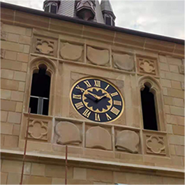塔鐘機芯采用我公司自主研制開發(fā)的四連桿式機芯,即一臺主機帶動四臺分機運機運轉(zhuǎn),從而很好的保證了四面塔鐘計時的同步性。